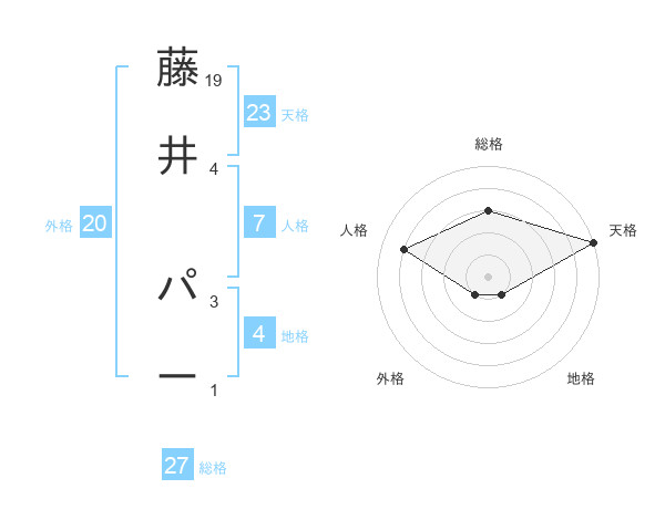 藤井 パーさんの天格は23画の5点!