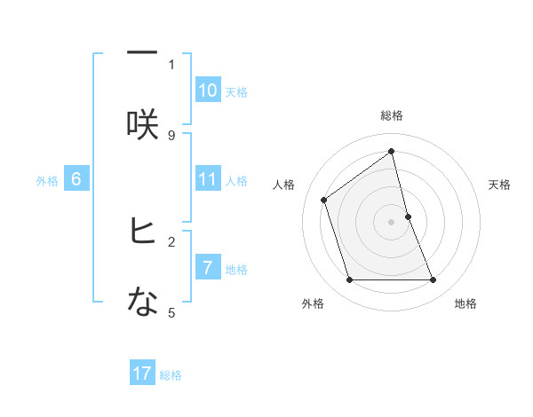 一咲 ヒなさんを姓名の画数から五運を鑑定