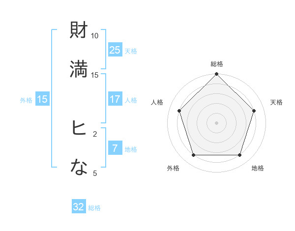 財満 ヒなさんを姓名の画数から五運を鑑定