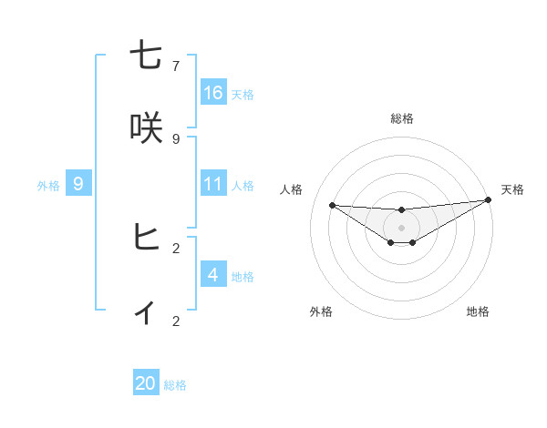 七咲 ヒィさんを姓名の画数から五運を鑑定