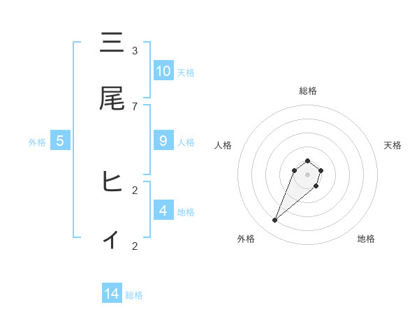三尾 ヒィさんを姓名の画数から五運を鑑定