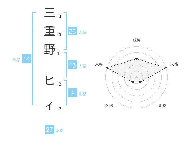 三重野 ヒィさんの総格は27画の3点