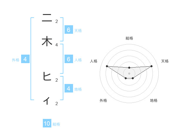 二木 ヒィさんを姓名の画数から五運を鑑定