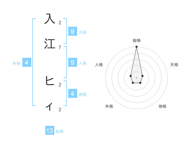 入江 ヒィさんを姓名の画数から五運を鑑定