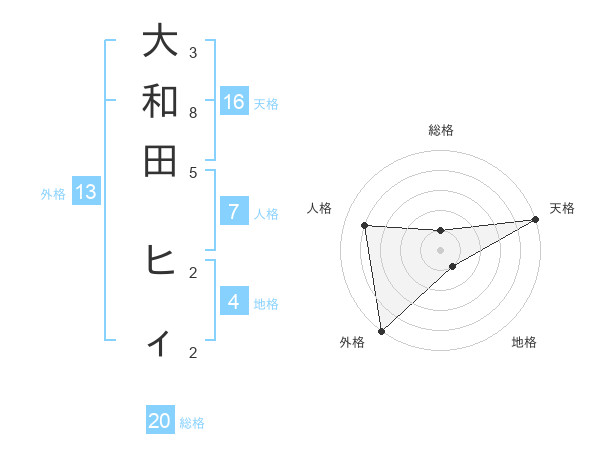 大和田 ヒィさんを姓名の画数から五運を鑑定