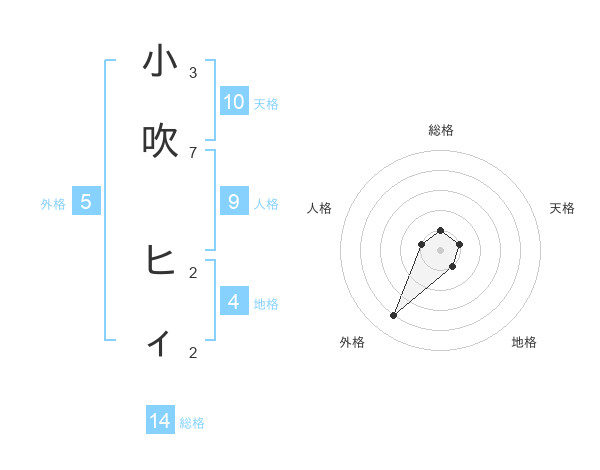 小吹 ヒィさんの総格は14画の1点!