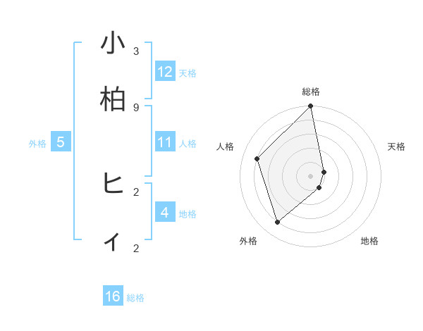 小柏 ヒィさんの天格は12画の1点!