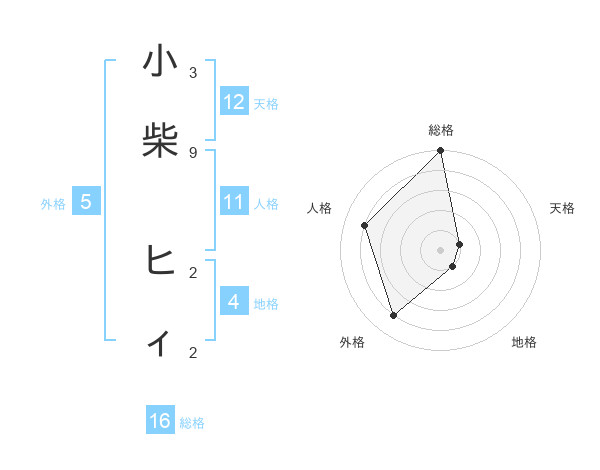 小柴 ヒィさんを姓名の画数から五運を鑑定
