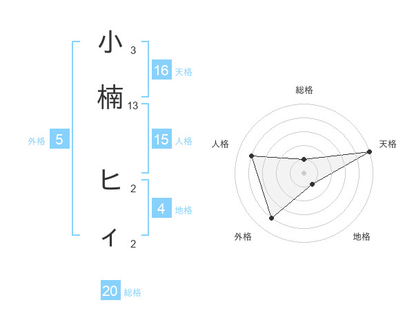 小楠 ヒィさんを姓名の画数から五運を鑑定