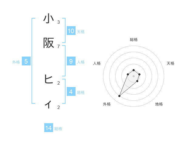 小阪 ヒィさんを姓名の画数から五運を鑑定