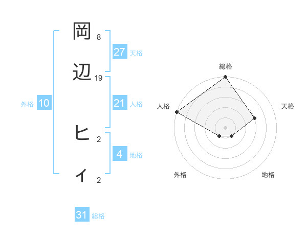 岡辺 ヒィさんの総格は31画の5点!