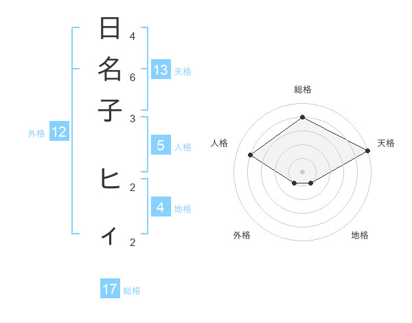 日名子 ヒィさんを姓名の画数から五運を鑑定