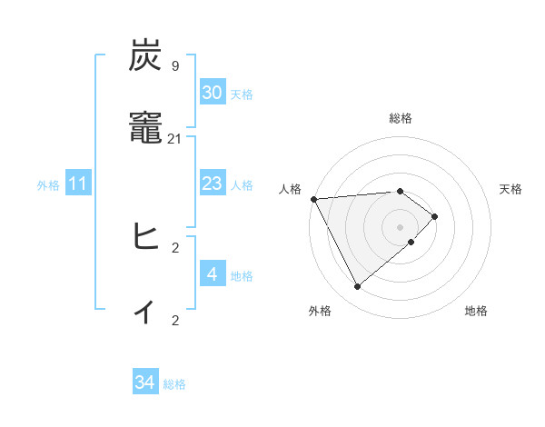炭竈 ヒィさんの総格は34画の2点!