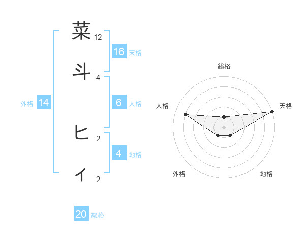 菜斗 ヒィさんの天格は16画の5点!