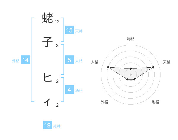 蛯子 ヒィさんの天格は15画の4点!