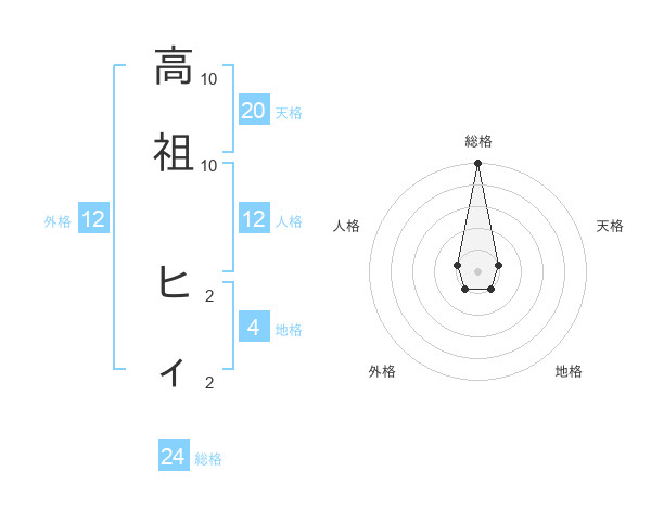 高祖 ヒィさんの総格は24画の5点!