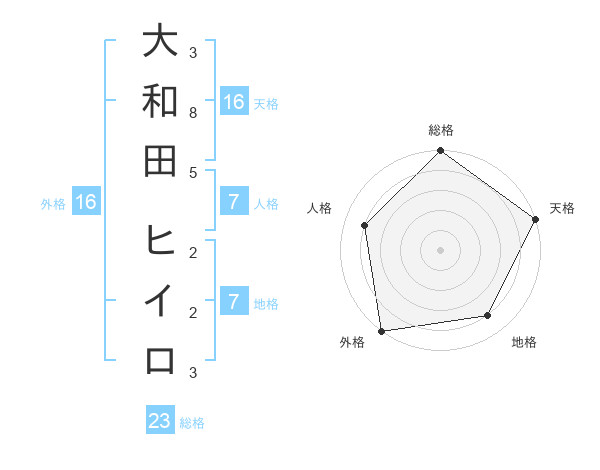 大和田 ヒイロさんの天格は16画の5点!