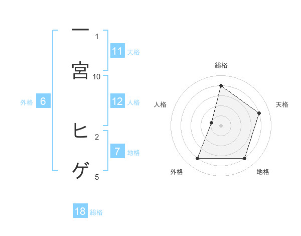 一宮 ヒゲさんの地格は7画の4点!
