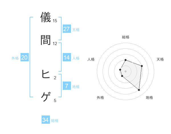 儀間 ヒゲさんを姓名の画数から五運を鑑定