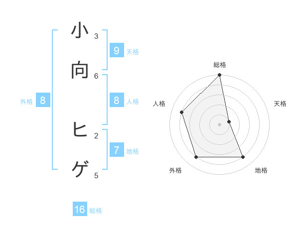 小向 ヒゲさんの外格は8画の4点!