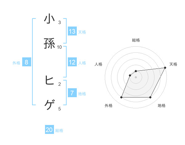 小孫 ヒゲさんを姓名の画数から五運を鑑定