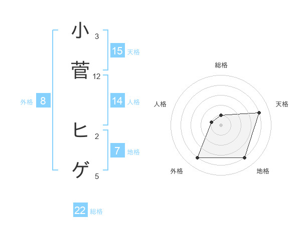 小菅 ヒゲさんの天格は15画の4点!