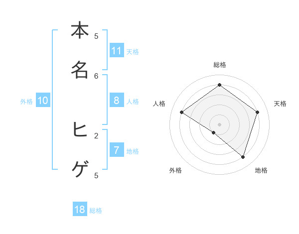 本名 ヒゲさんを姓名の画数から五運を鑑定