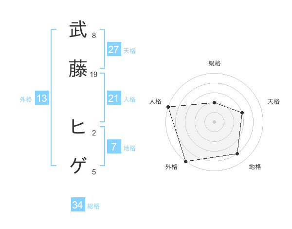 武藤 ヒゲさんの地格は7画の4点!