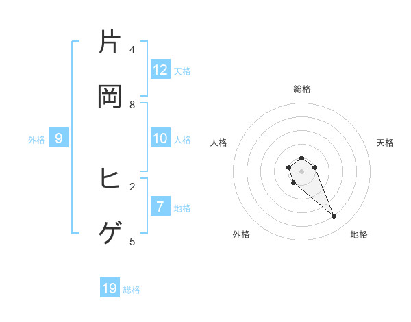 片岡 ヒゲさんを姓名の画数から五運を鑑定