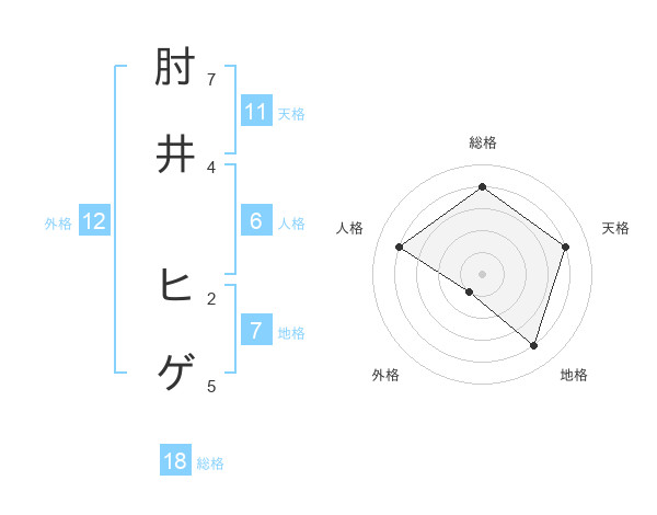 肘井 ヒゲさんの地格は7画の4点!