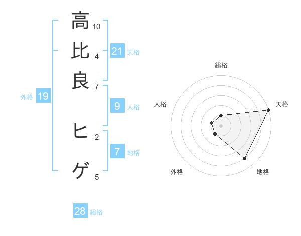 高比良 ヒゲさんを姓名の画数から五運を鑑定