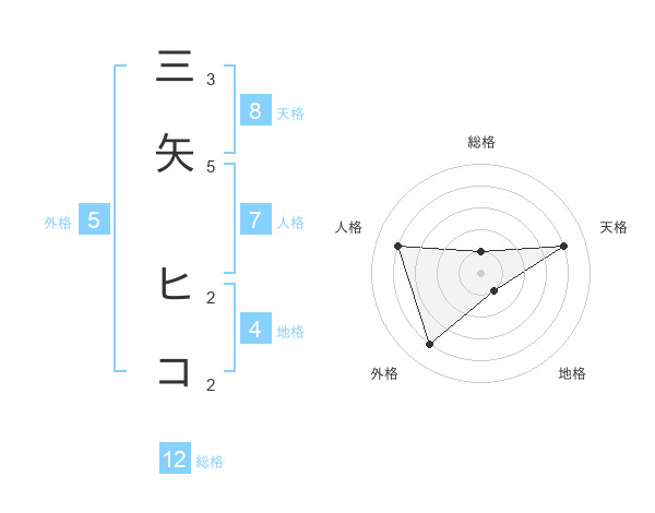 三矢 ヒコさんの天格は8画の4点!