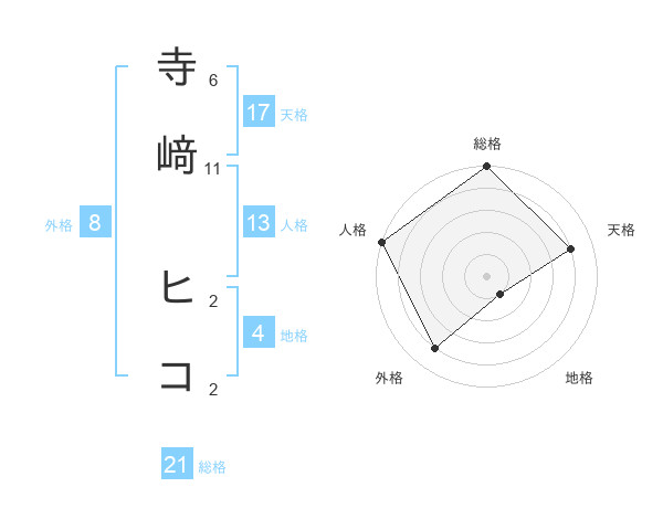 寺﨑 ヒコさんの天格は17画の4点!