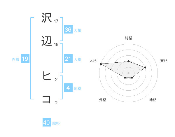 沢辺 ヒコさんを姓名の画数から五運を鑑定