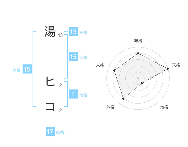 湯 ヒコさんの総格は17画の4点!