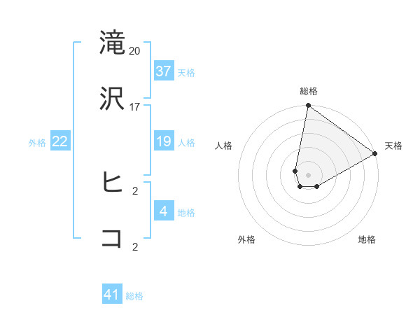 滝沢 ヒコさんの天格は37画の5点!