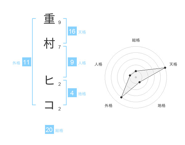 重村 ヒコさんを姓名の画数から五運を鑑定