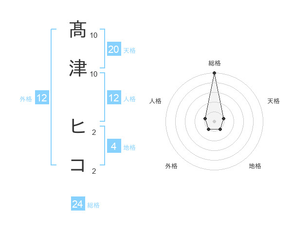 髙津 ヒコさんを姓名の画数から五運を鑑定