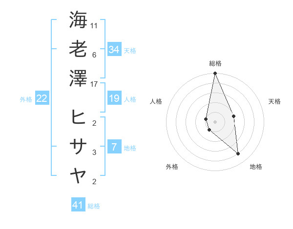 海老澤 ヒサヤさんを姓名の画数から五運を鑑定