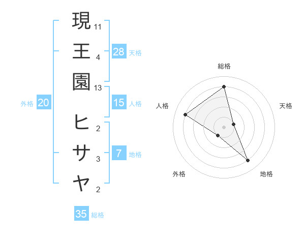 現王園 ヒサヤさんを姓名の画数から五運を鑑定