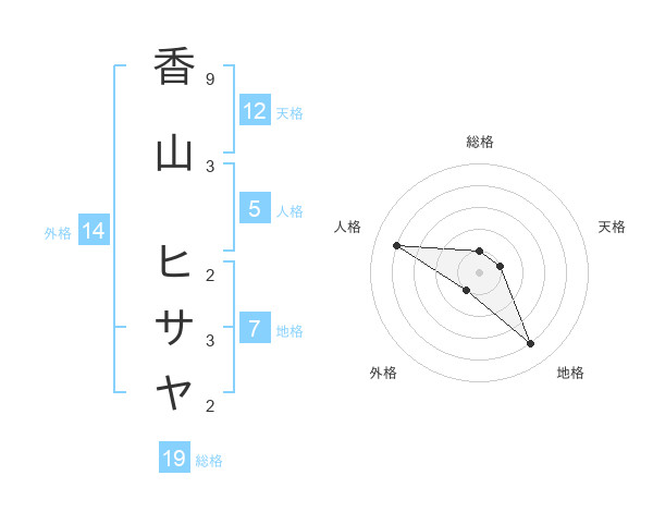 香山 ヒサヤさんの外格は14画の1点!