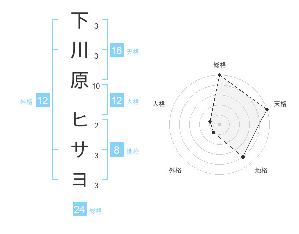 下川原 ヒサヨさんを姓名の画数から五運を鑑定