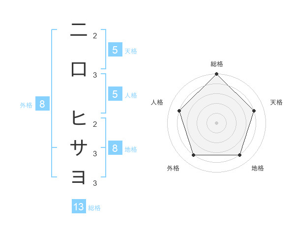 二口 ヒサヨさんの天格は5画の4点!