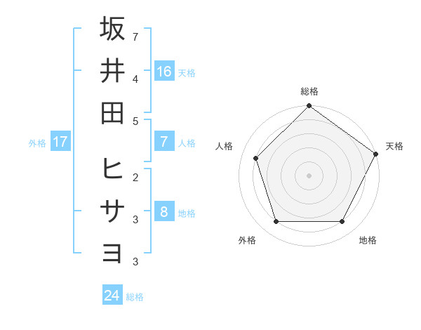 坂井田 ヒサヨさんを姓名の画数から五運を鑑定