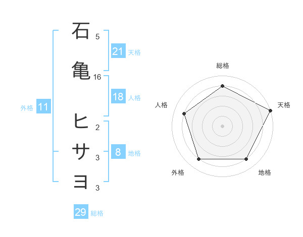 石亀 ヒサヨさんの総格は29画の4点!