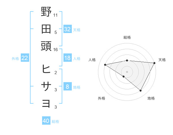 野田頭 ヒサヨさんの名前の鑑定結果は!