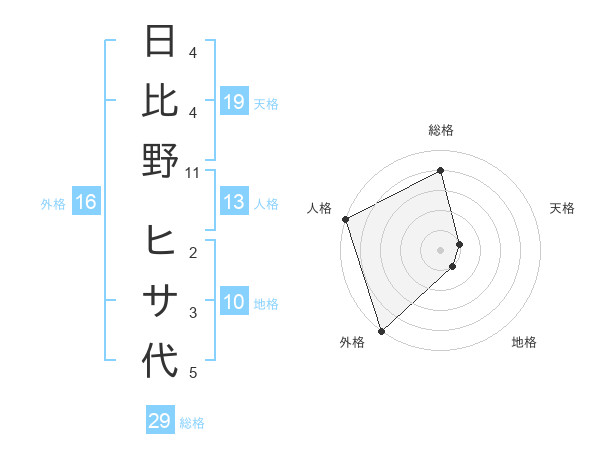 日比野 ヒサ代さんを姓名の画数から五運を鑑定