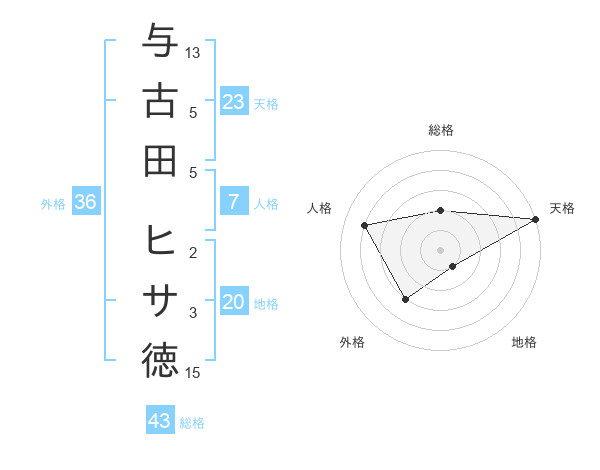 与古田 ヒサ徳さんを姓名の画数から五運を鑑定