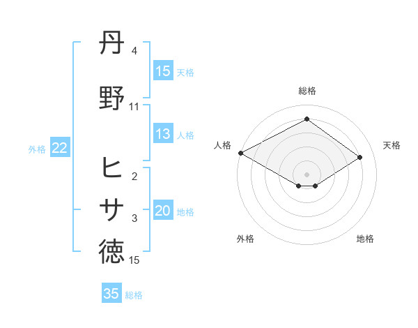 丹野 ヒサ徳さんの総格は35画の4点!