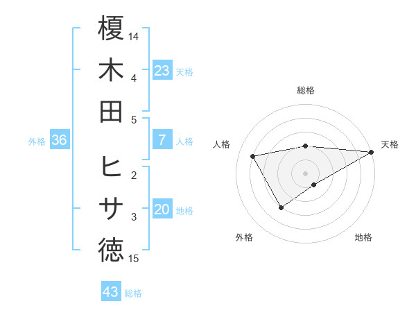 榎木田 ヒサ徳さんの天格は23画の5点!